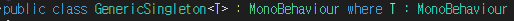 1. 제네릭 MonoBehaviour 클래스 정의: T 라는 제네릭 매개 변수를 사용하여 MonoBehaviour 클래스를 정의한다.